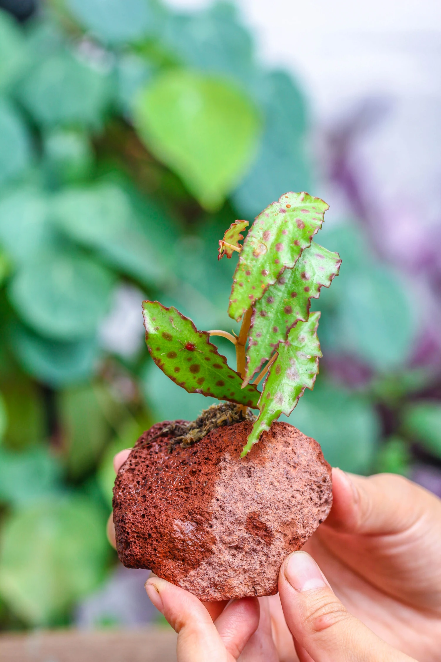 I plant small plants like fittonia and small ferns in the drilled lava in my terrarium projects. I restrict the roots so they won’t destroy the live moss wall.
