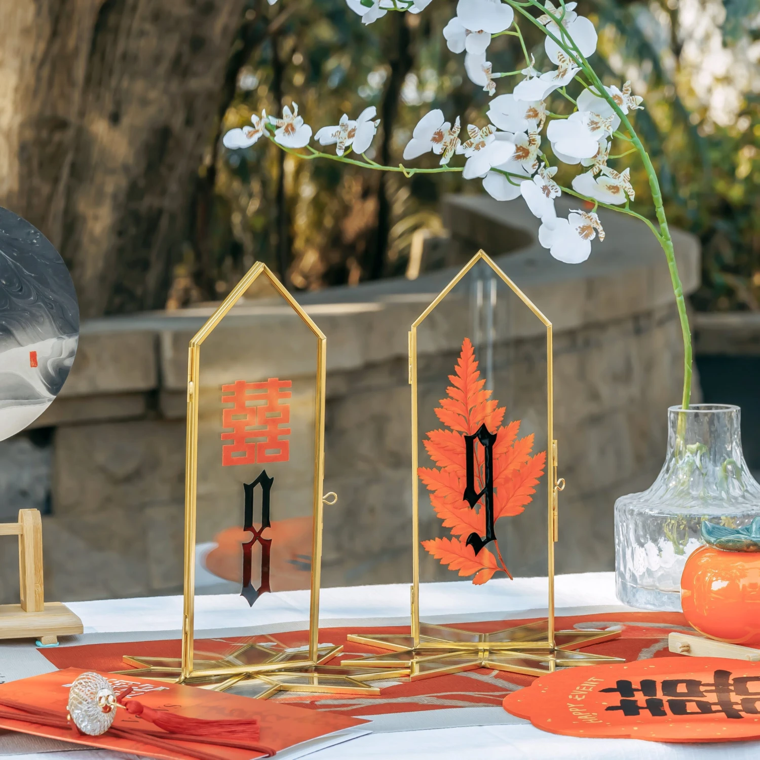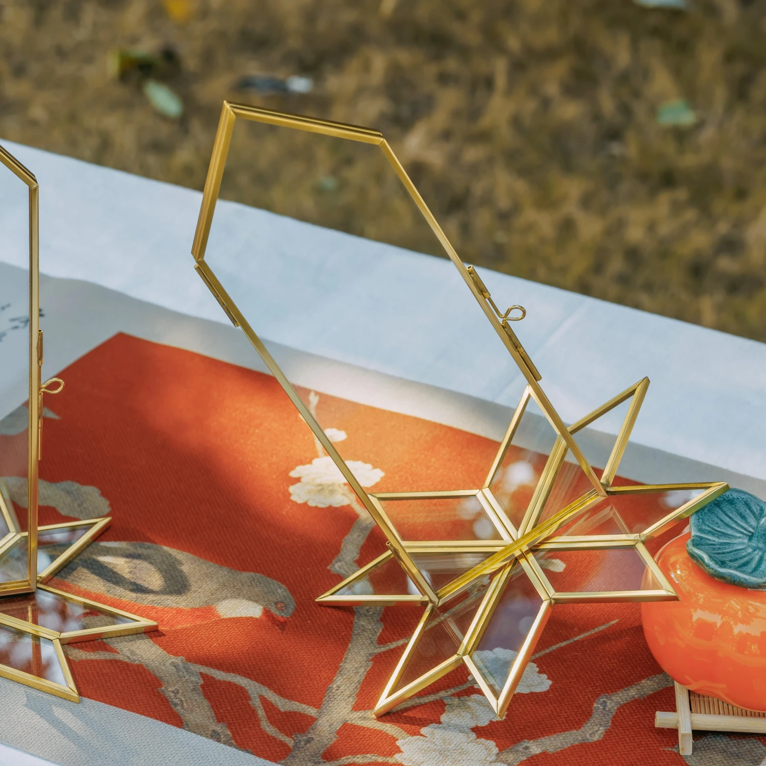 This unique table number holder is designed by the NCYP workshop. The geometric Gardenia flower is a popular window decoration pattern in traditional South Chinese gardens. I read it while looking for information about peacock ferns, which recently became popular.