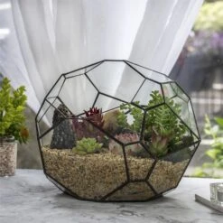 1. Handmade house-shaped glass geometric terrarium: this is the black version with an updated hinge. It can hold the lid in place properly; it is more sturdy. The lid will stay firmly with the box