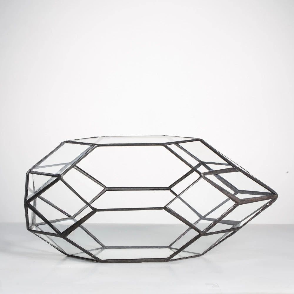 Special features: This irregular prism geometric terrarium is great for centerpieces. It is large. The height is 25cm.