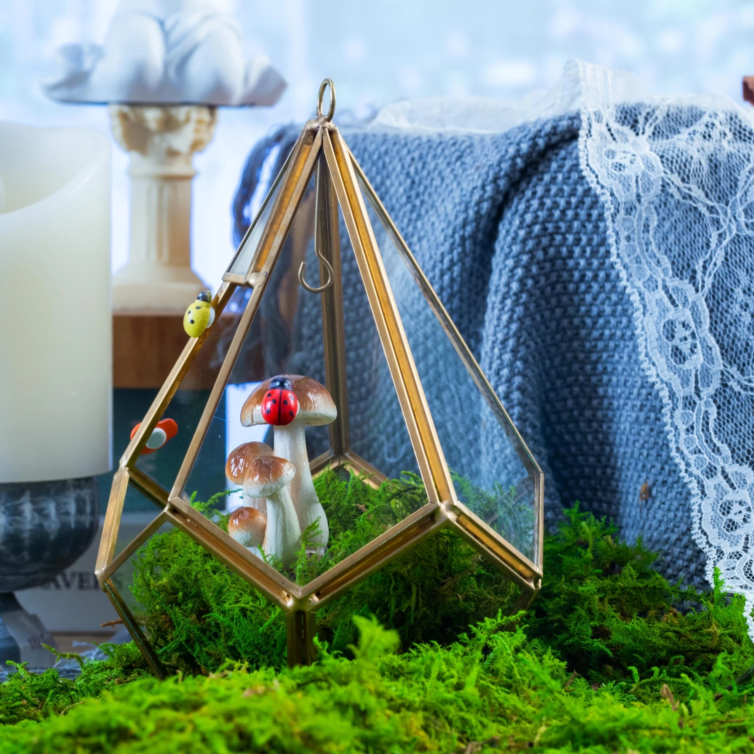 Note: Geometric terrarium with chain ONLY; decorative preserved moss are NOT included. If you need it, please message me, and I will put some in the package.