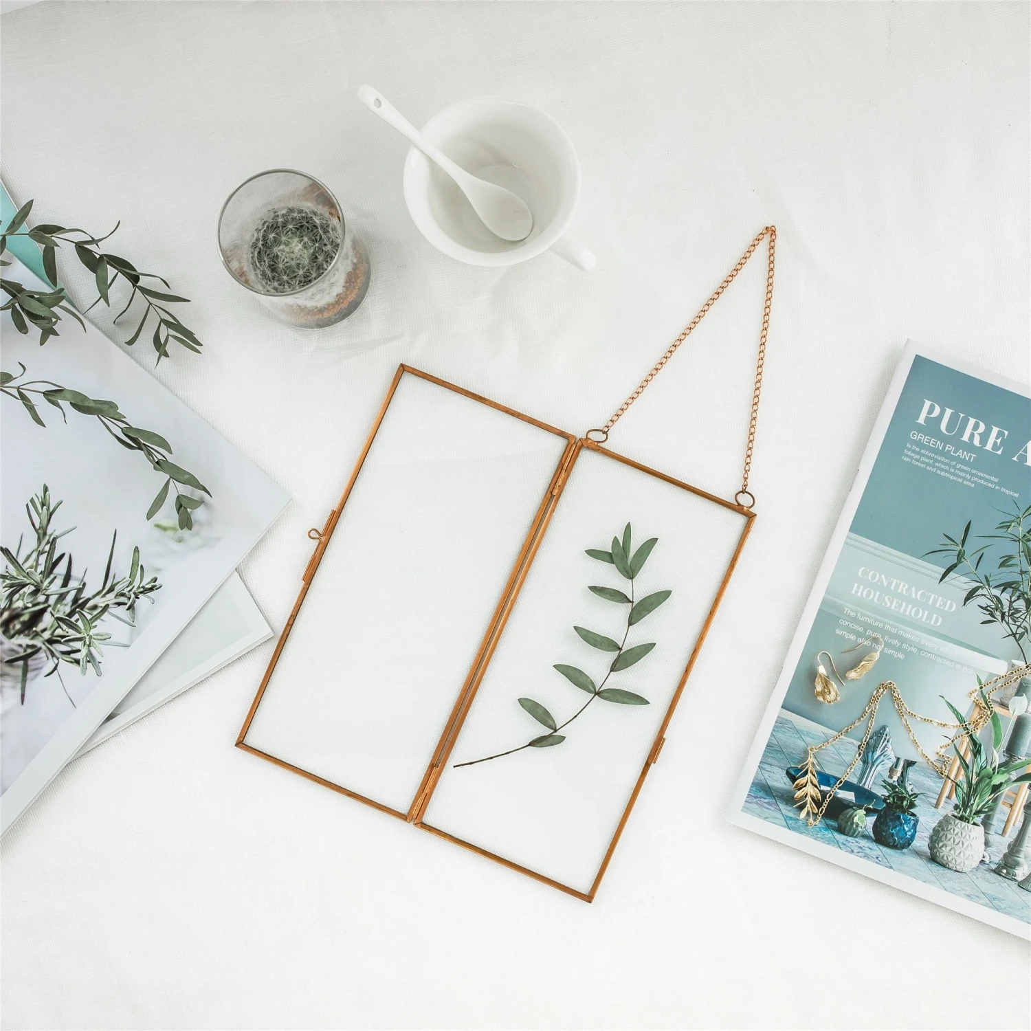 2. Handmade double glass brass and glass frame with a natural vintage gold color, go well with pressed flowers and plants