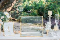 3. Make your weddings and parties even more special with these exquisite table number holders. These versatile holders are perfect for a variety of table settings and will add an extra touch of elegance to your event. Order now and make your special day unforgettable!