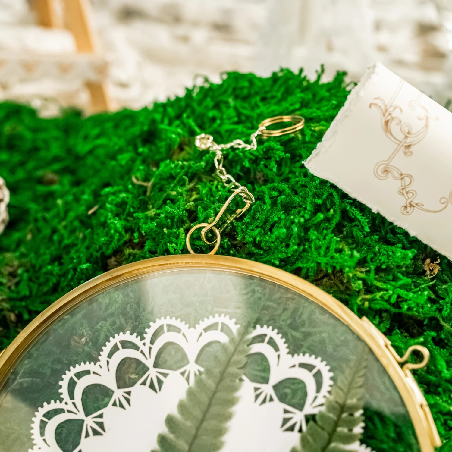 2. Handmade round double glass brass and glass frame with a natural vintage gold color, go well with pressed flowers and plants.