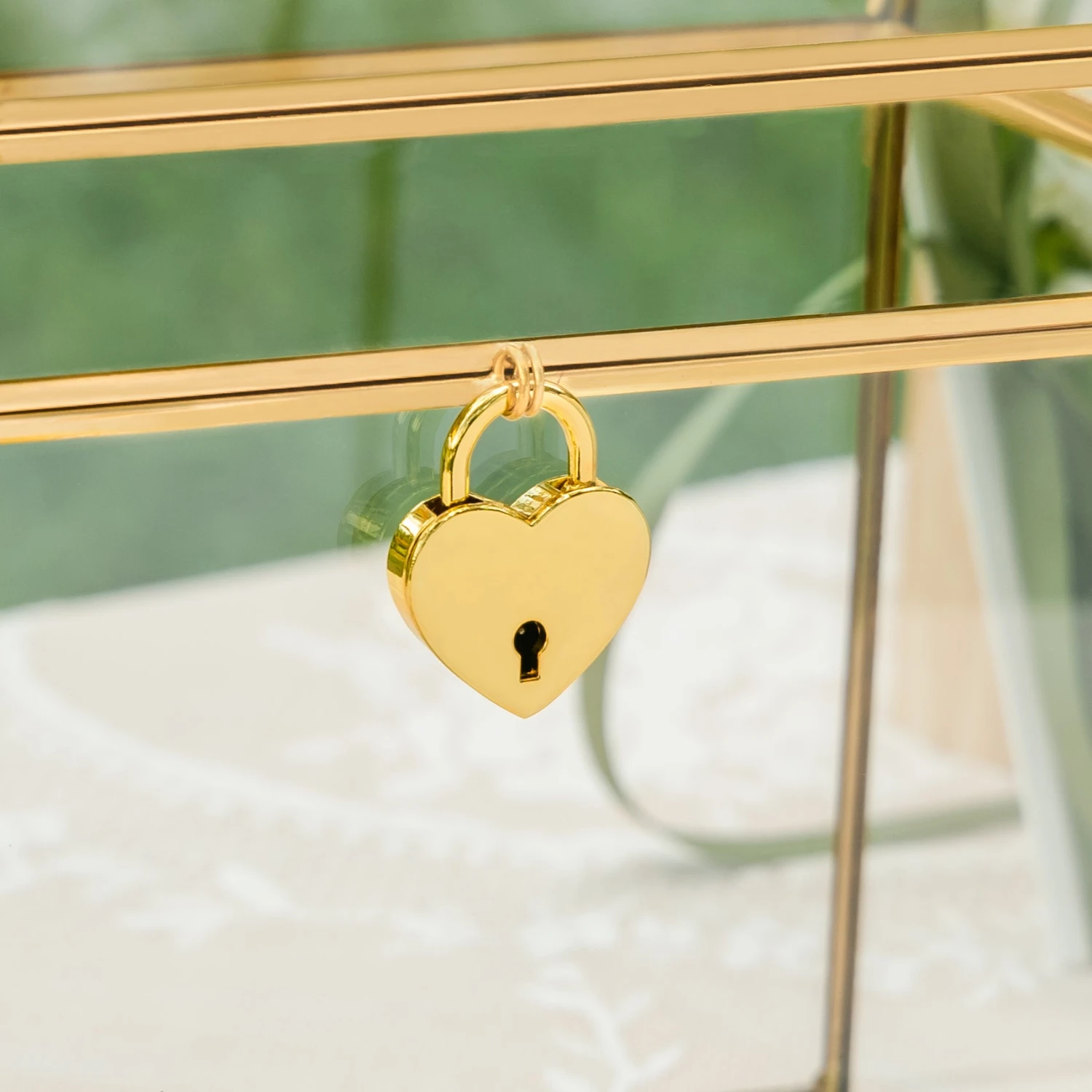 - 2. A slot on the top of the swing lid, with a heart-shaped lock and key, ensures that the contents inside are safe and secure, perfect for card collection or wishing well on the reception table.
