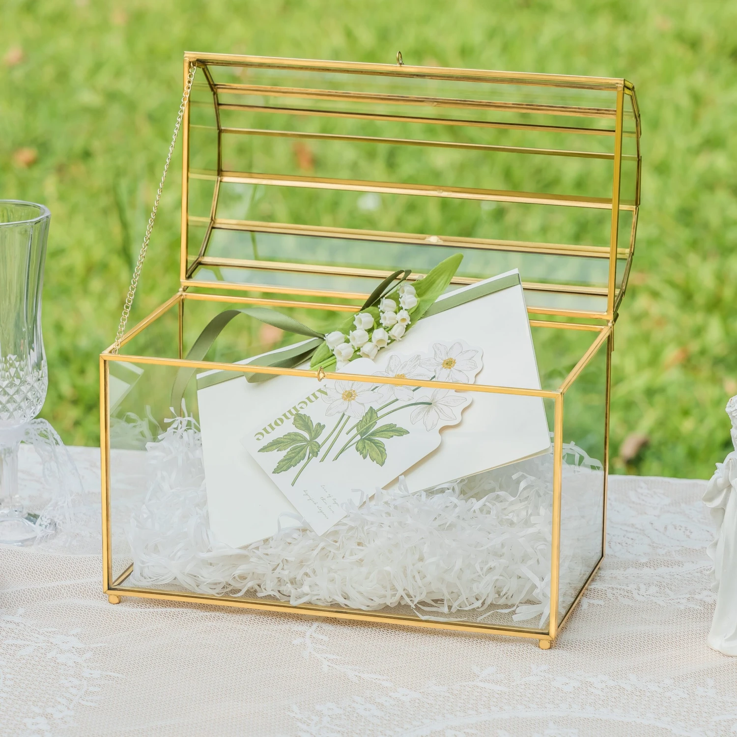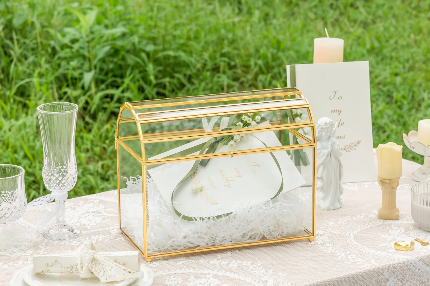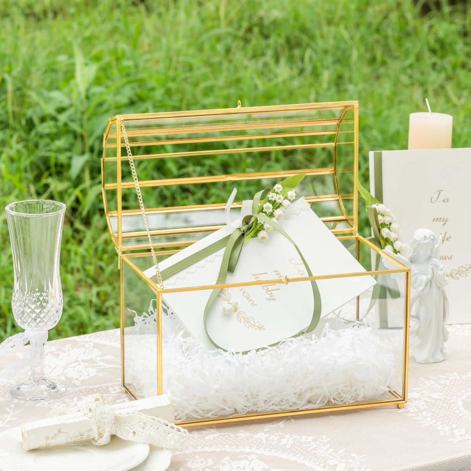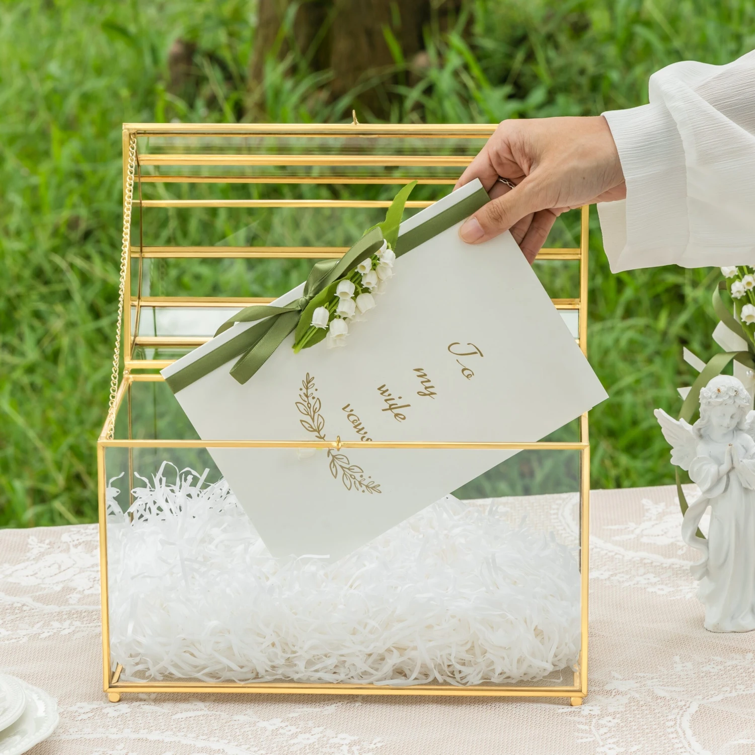 - 3. Ideal for a centerpiece, for displaying your gift/thanks cards, keepsakes, envelopes, congratulation cards, cash gifts, and money. It can be used as a wedding card holder.