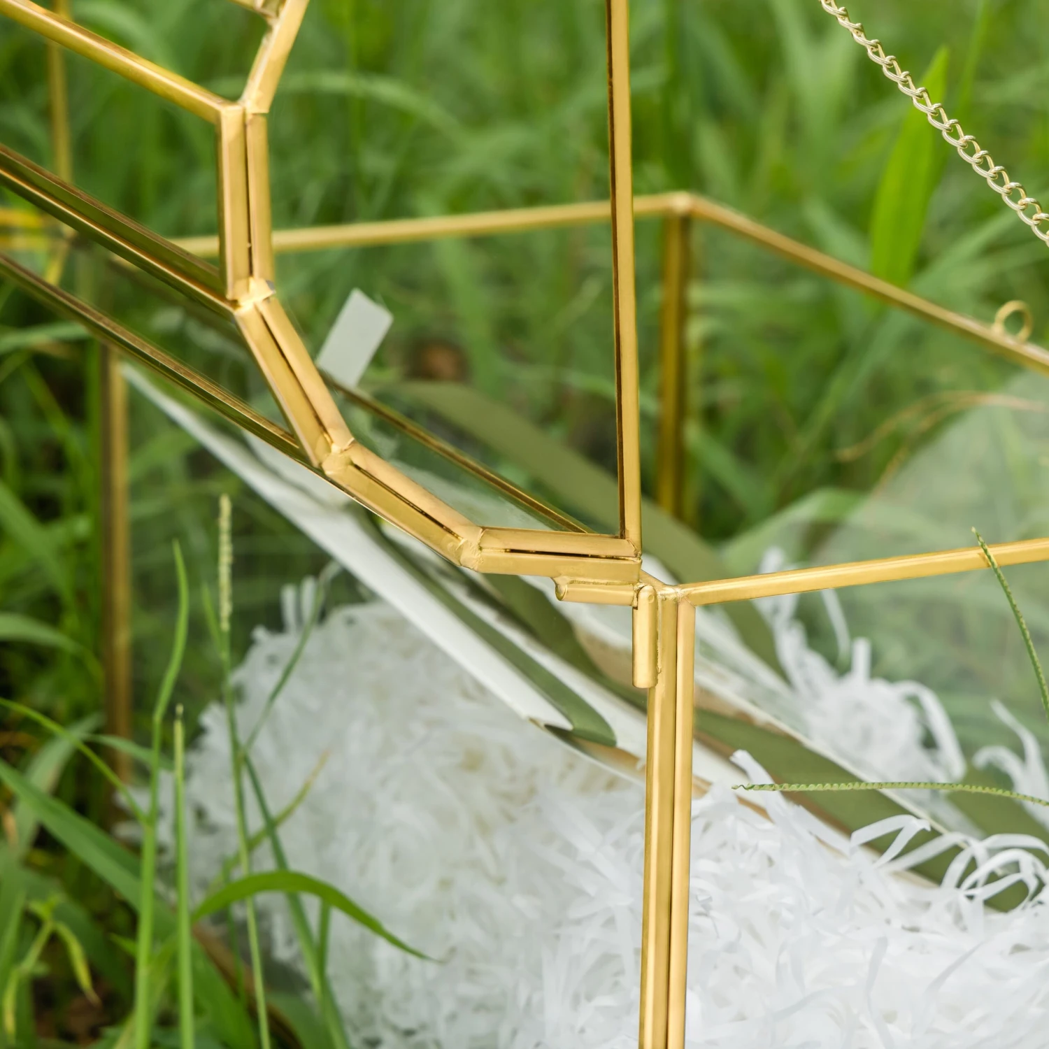 Handmade Gold House Shape Glass Geometric Terrarium Card Wishwell Reception Box For Wedding Ceromony