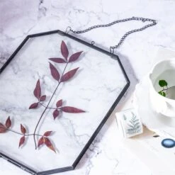 Wall Hanging Long Octagon Herbarium Brass Glass Frame For Pressed Flowers Dried Floating Frame