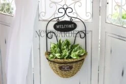 Pastoral Style Handmade Metalwork Wickerwork Basket Wall Hanging Planter For Home Garden Flower Pot