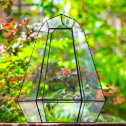 Large 16″ Tall And Wide 6 Sided Cone Tin And Glass Terrarium, Close, With Door