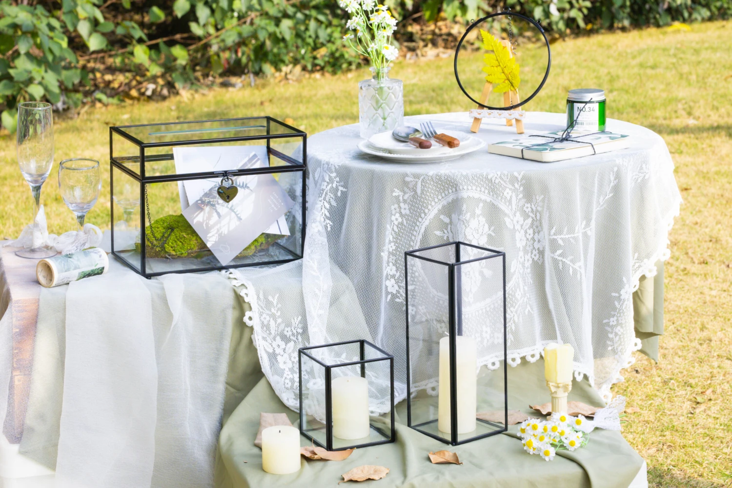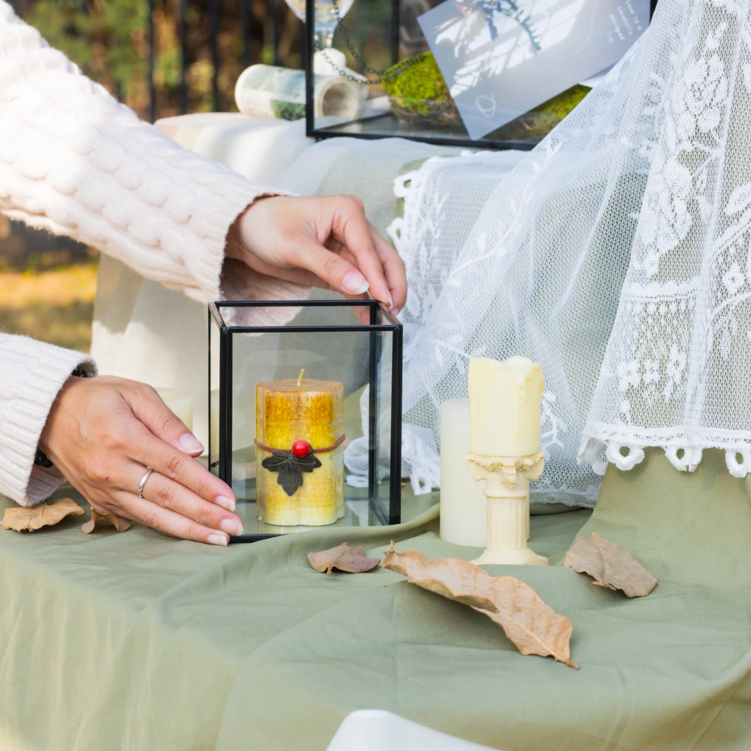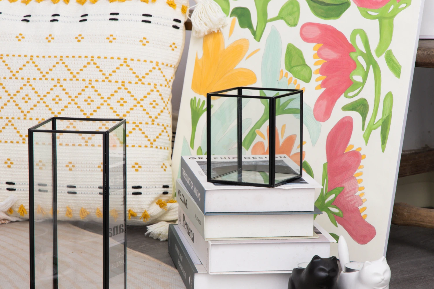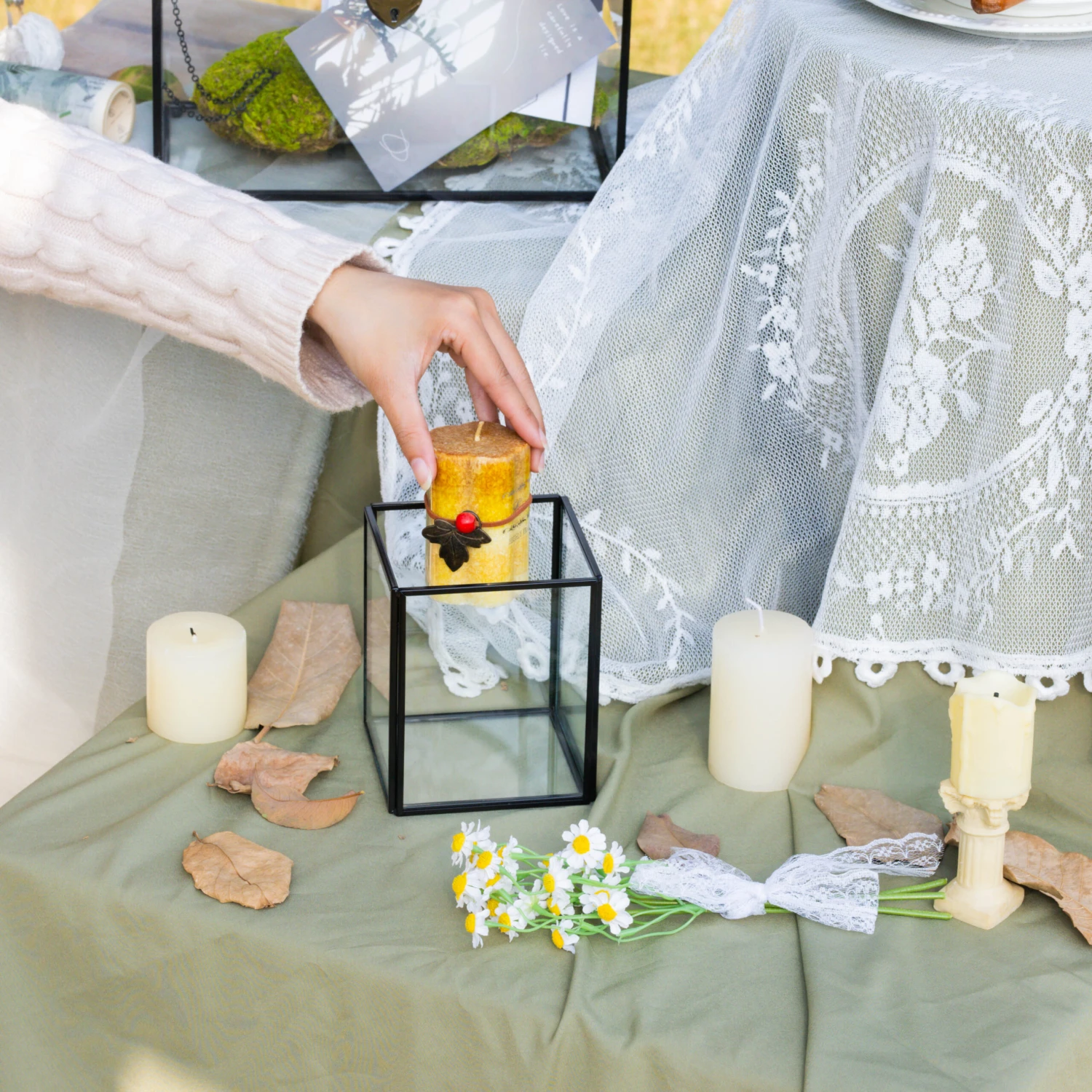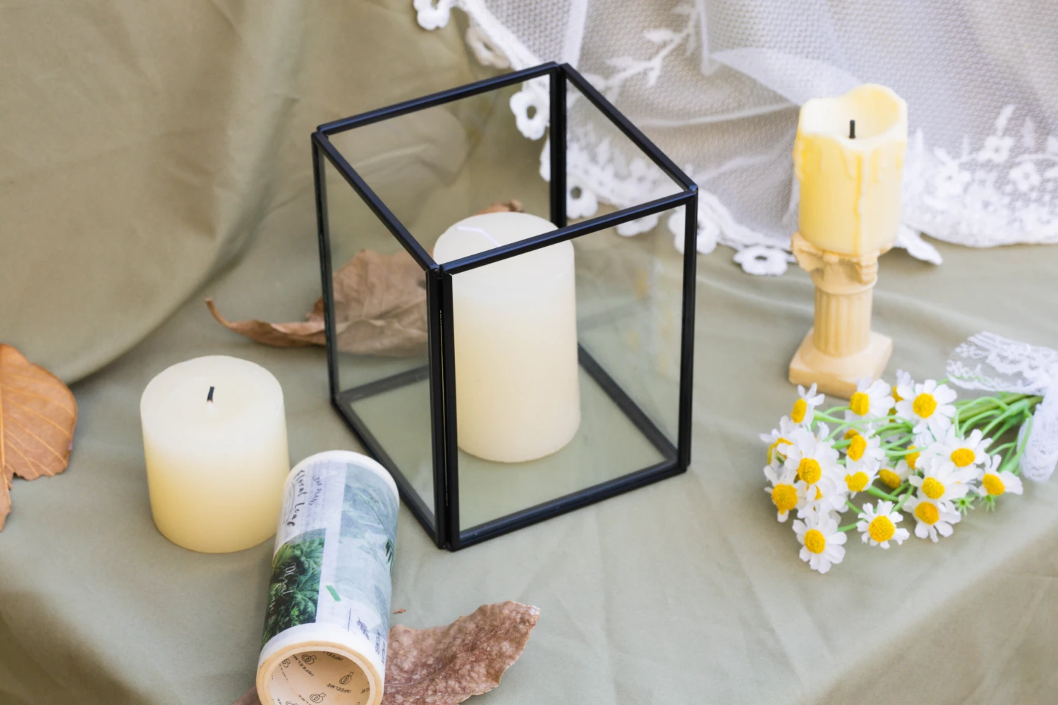 Elevate the ambiance of any occasion with our handcrafted Black Glass Candle Holder. The sleek black frame and elegant glass design add a touch of sophistication to weddings and parties. Bring warmth and style to your events with this stunning centerpiece.
