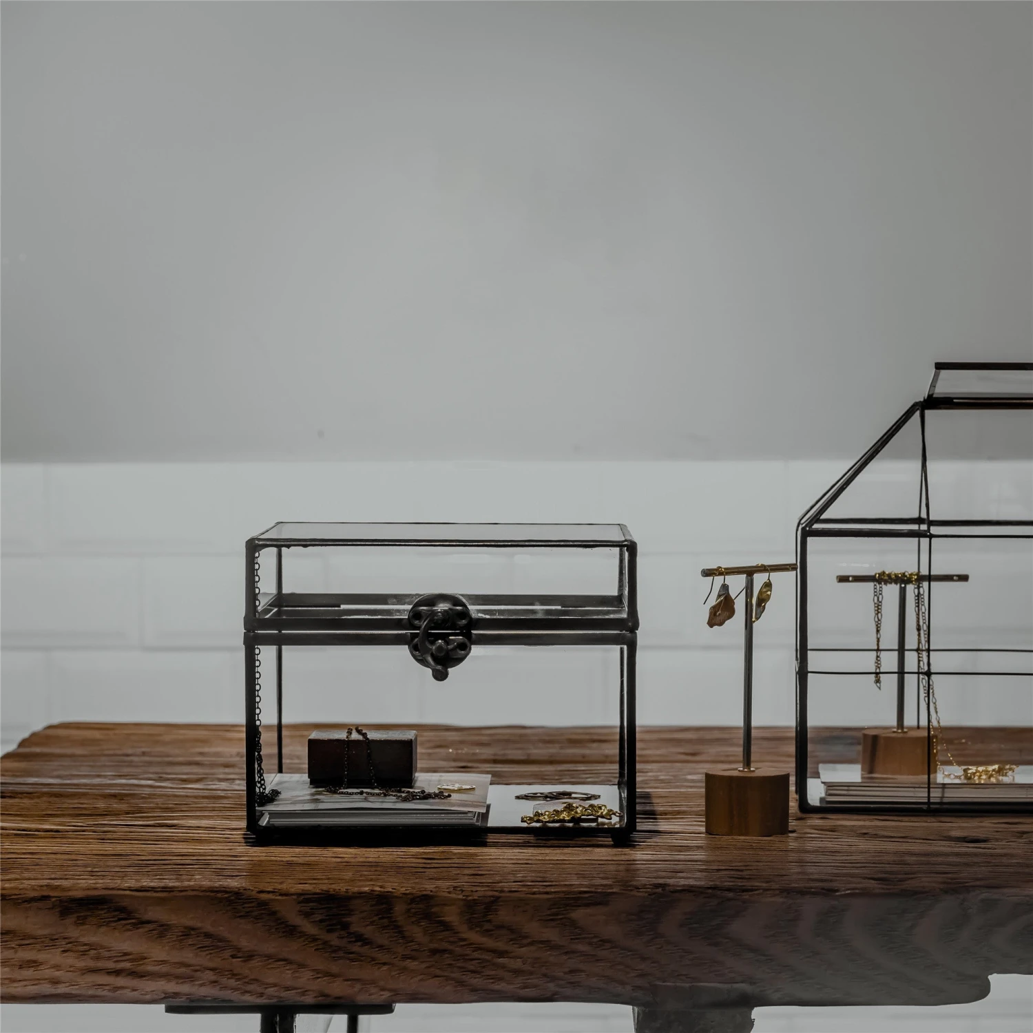 Small Vintage Rectangle Glass Jewelry Storage Card Box With Lock For Card Storage Jewelry Display