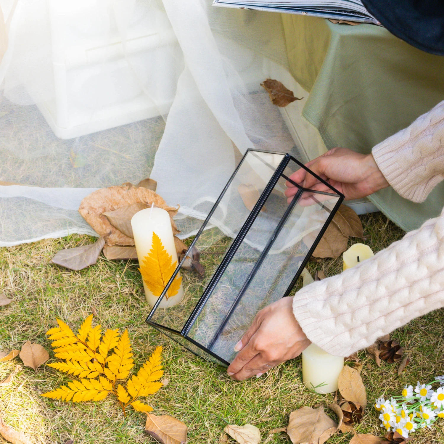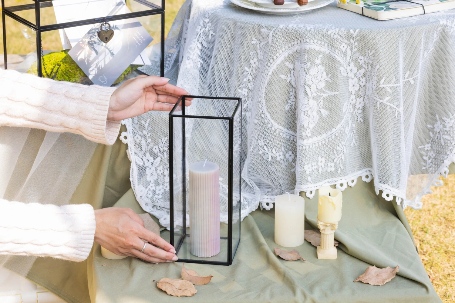 Glass candle holder only. The short candle holder and wedding card box are available in my shop.
