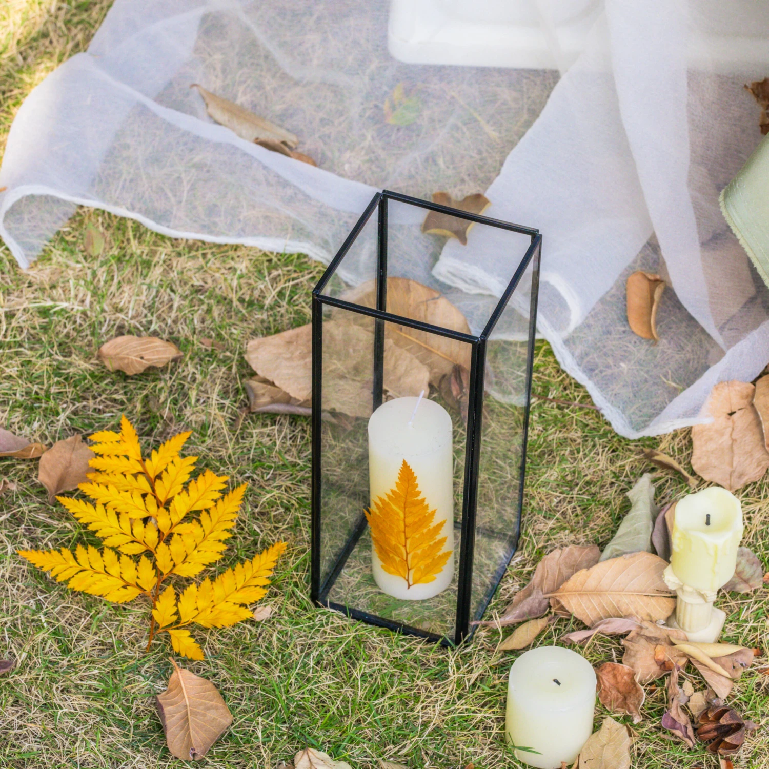 Elevate the ambiance of any occasion with our handcrafted Black Glass Candle Holder. The sleek black frame and elegant glass design add a touch of sophistication to weddings and parties. Bring warmth and style to your events with this stunning centerpiece.