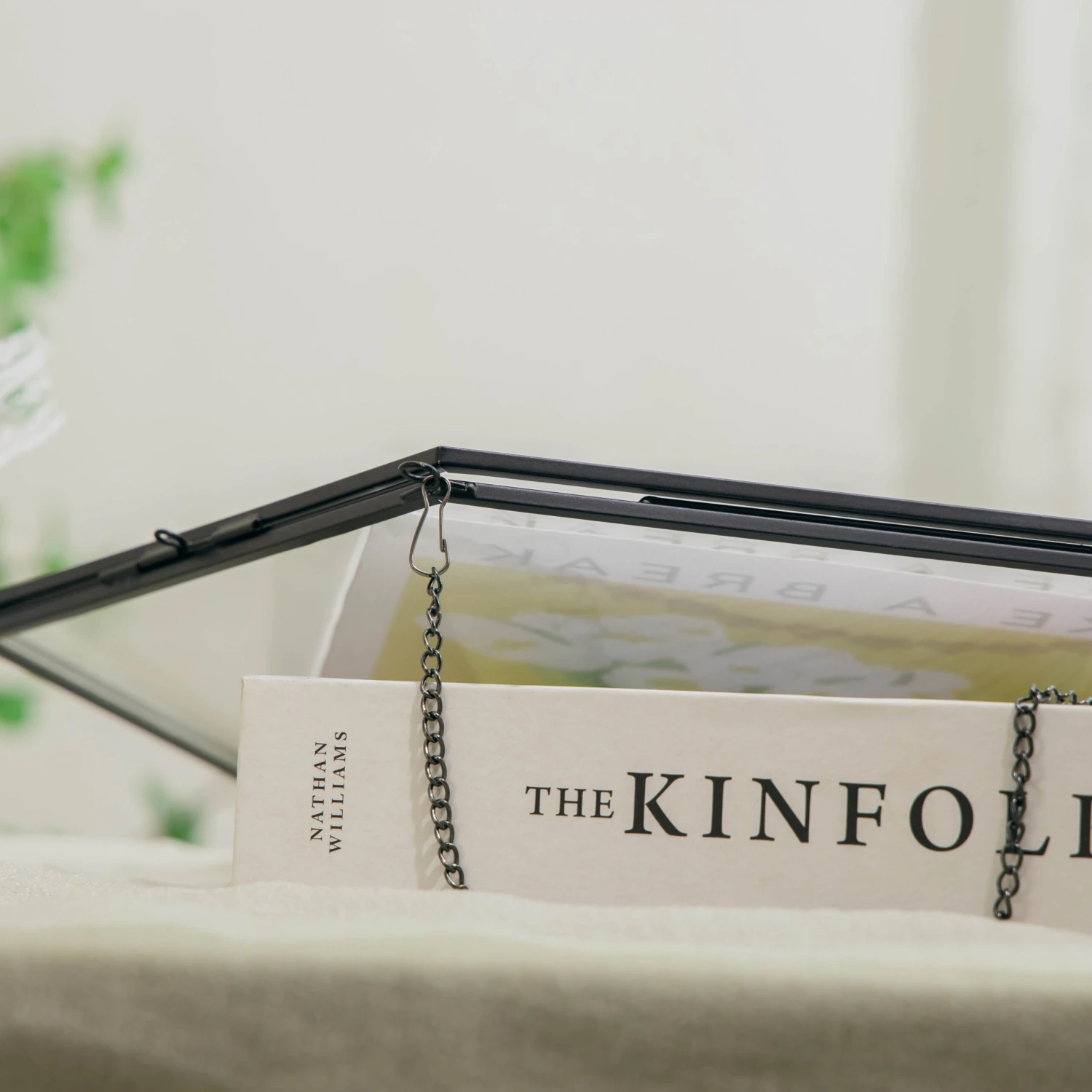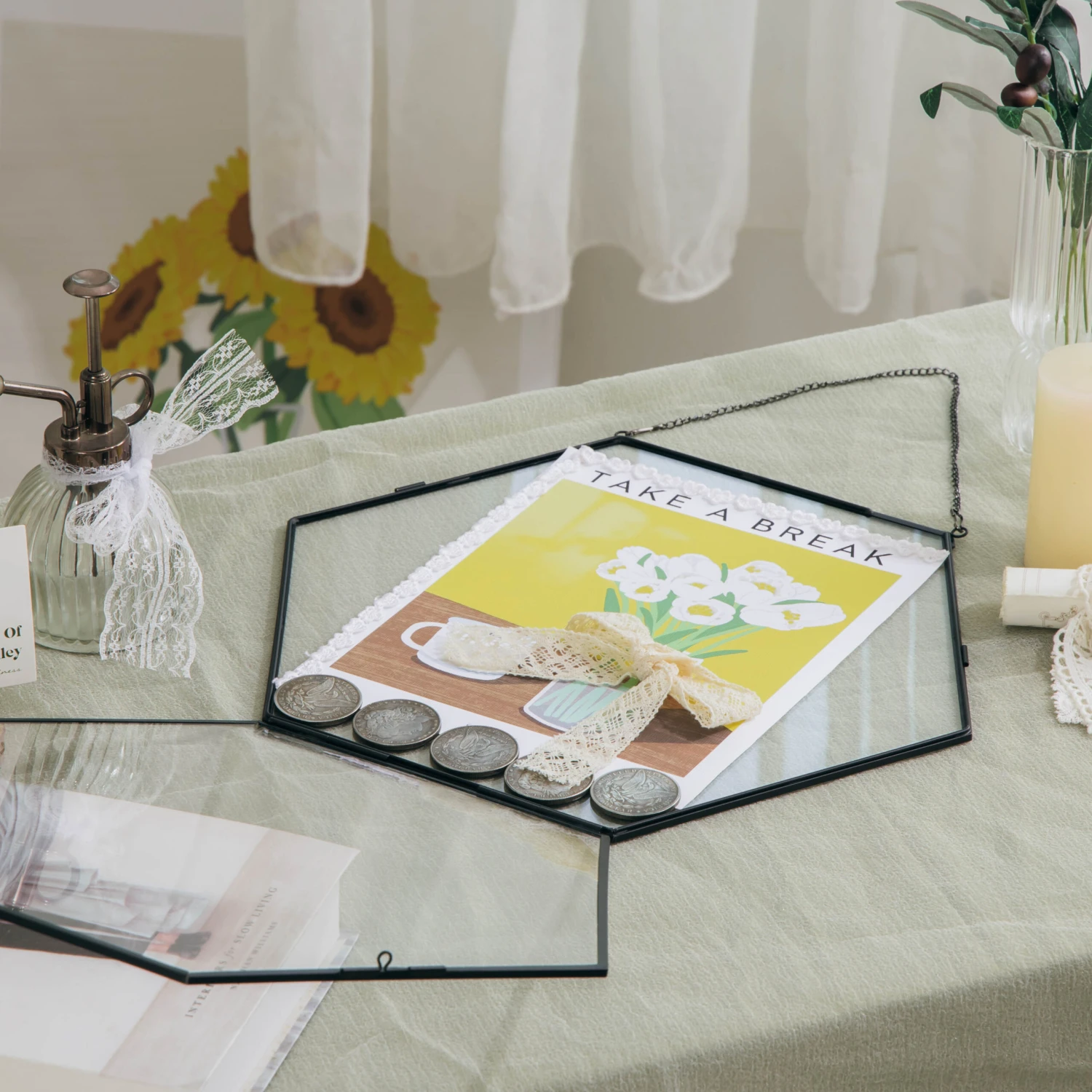 3. Handmade hexagon double glass brass and glass frame with a classic black color, go well with pressed flowers and plants.