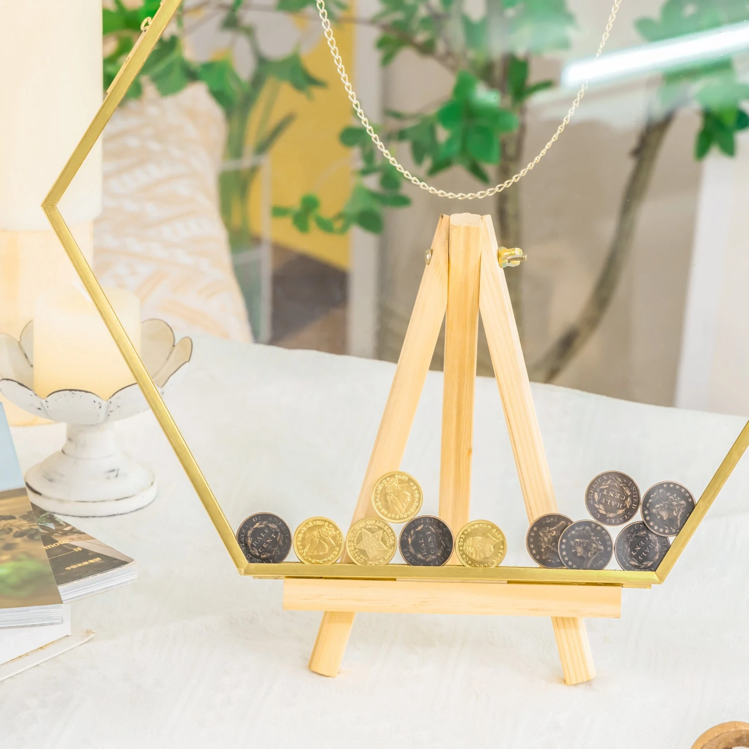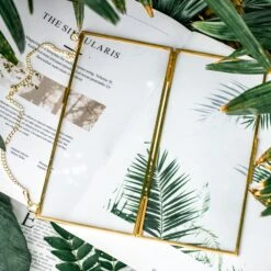 3. Handmade hexagon double glass brass and glass frame with a natural vintage gold color, go well with pressed flowers and plants.